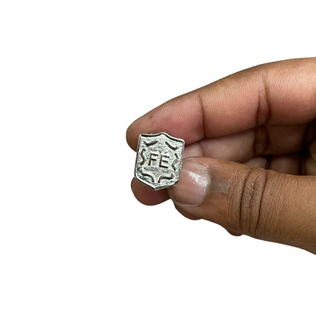 Pin Metálico Fé – Símbolo de Proteção e Crença – Acabamento Prateado