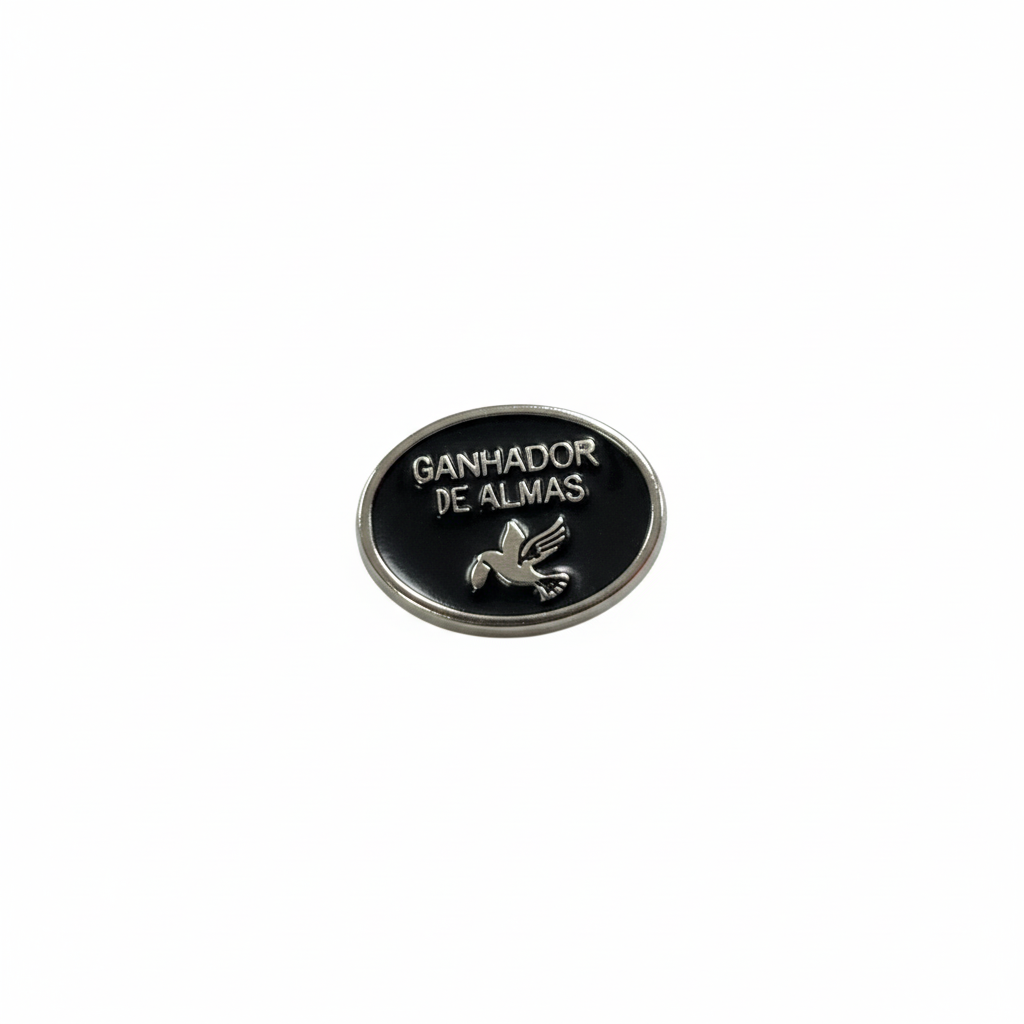 Este elegante boton oval é uma declaração visível de compromisso e paixão pela evangelização. Ideal para quem dedica sua vida à missão de "ganhar almas", ele serve como um lembrete constante do propósito divino e da importância de compartilhar a mensagem de esperança e salvação. O design sofisticado, com a frase "Ganhador de Almas" e a pomba, símbolo do Espírito Santo e da paz, torna esta peça tanto um adorno quanto uma inspiração.