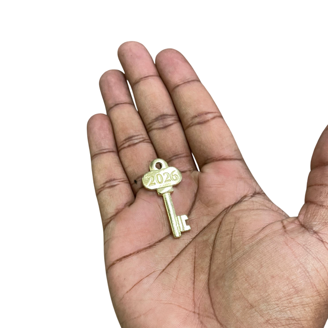 Seu design remete ao formato clássico de chave antiga, trazendo um significado especial de abertura de caminhos, novas conquistas e portas que Deus irá abrir em 2026. Possui um pequeno furo na parte superior, permitindo uso como pingente, chaveiro, colar ou símbolo decorativo.
